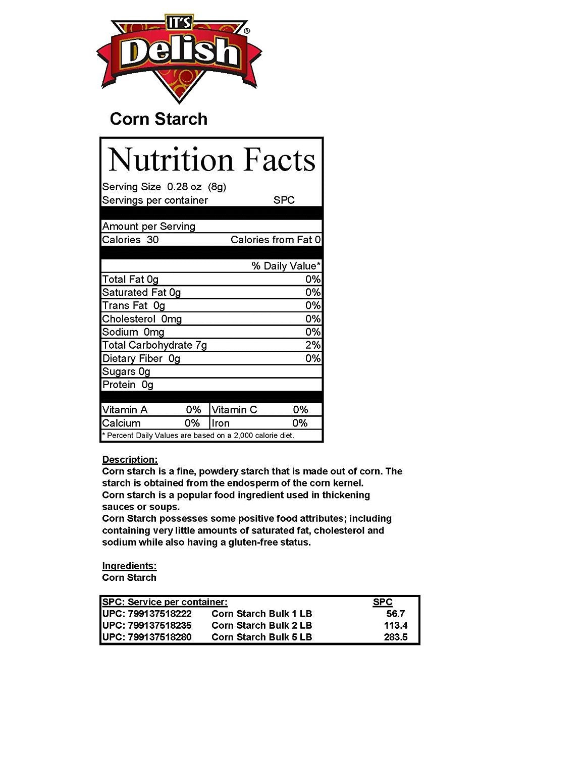 Highest quality corn starch for any thickening purpose use and in baked goods like gravy, sauces, stews, and soups. Great also for pie fillings, custards, and puddings. Enjoy, keep your dish from taking on a chalky taste!