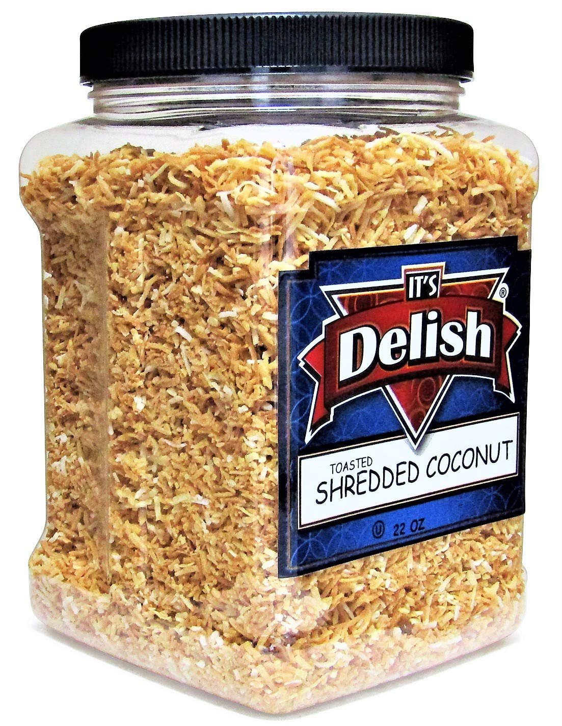 - GOURMET FLAVOR – Its Delish Jumbo Reusable Container Jar Toasted Coconut Fancy Shred are baked in small batches and given just the right amount of unsweetened sugar-free to bring out the natural flavor of these delicious snacks. These tasty toasted coconut flakes on granola, yogurt, fruit, cakes, desserts, ice cream or as an indulgent treat all by themselves. Great for adding to your favorite recipes!