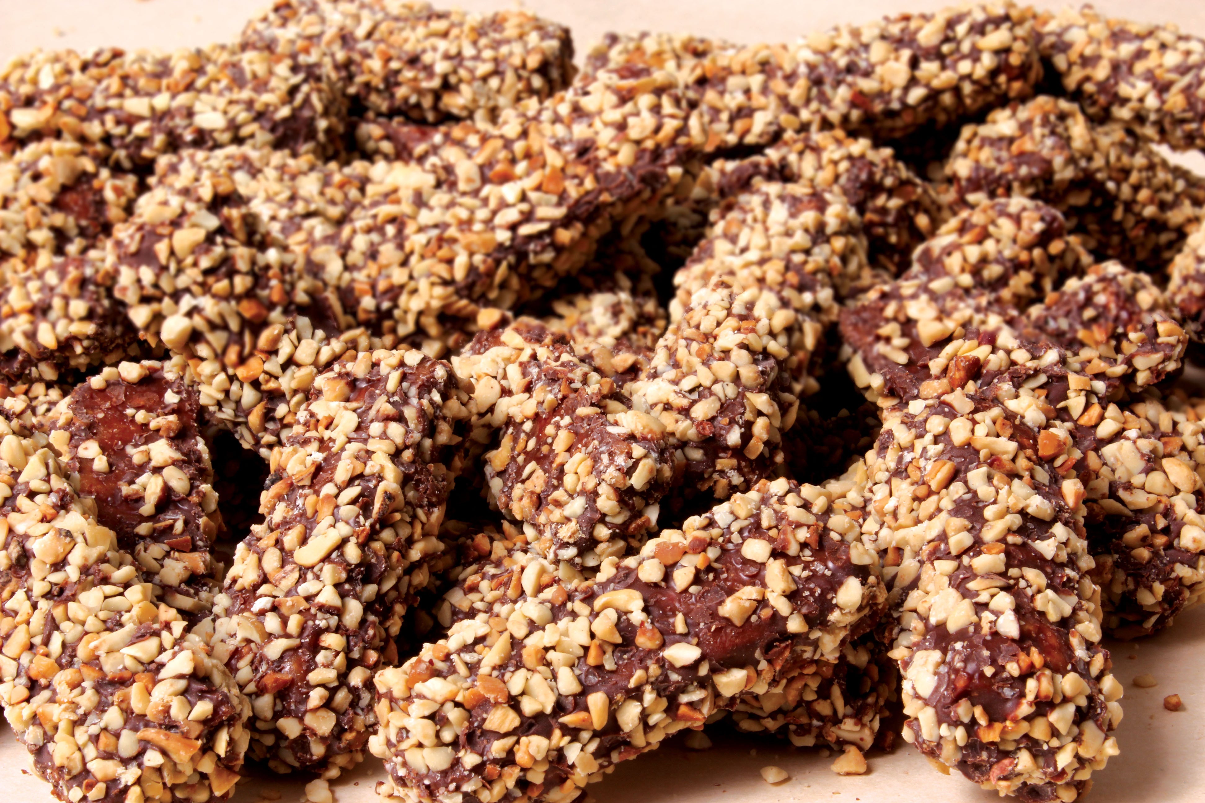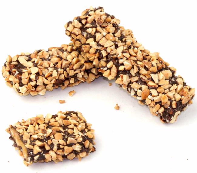 Viennese Crunch from It's Delish at the best prices coated in fine dark chocolate topped with chopped nuts. Wonderful fancy treat for you or to send as a gift. Candy bar, party favors, weddings, birthdays, baby showers and for any occasion