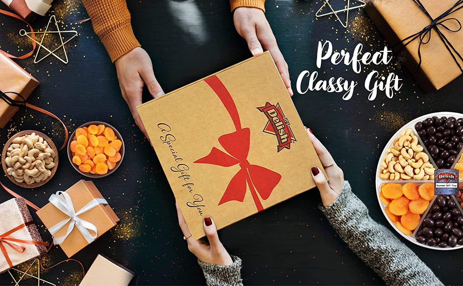 Gourmet Nuts Gift Basket - Chocolate and Dried Fruit Large Gift Tray 6-Pt by It's Delish – Valentines Fathers Mothers Day Anniversary Family Parties Birthday Gift Box - Vegan, Kosher