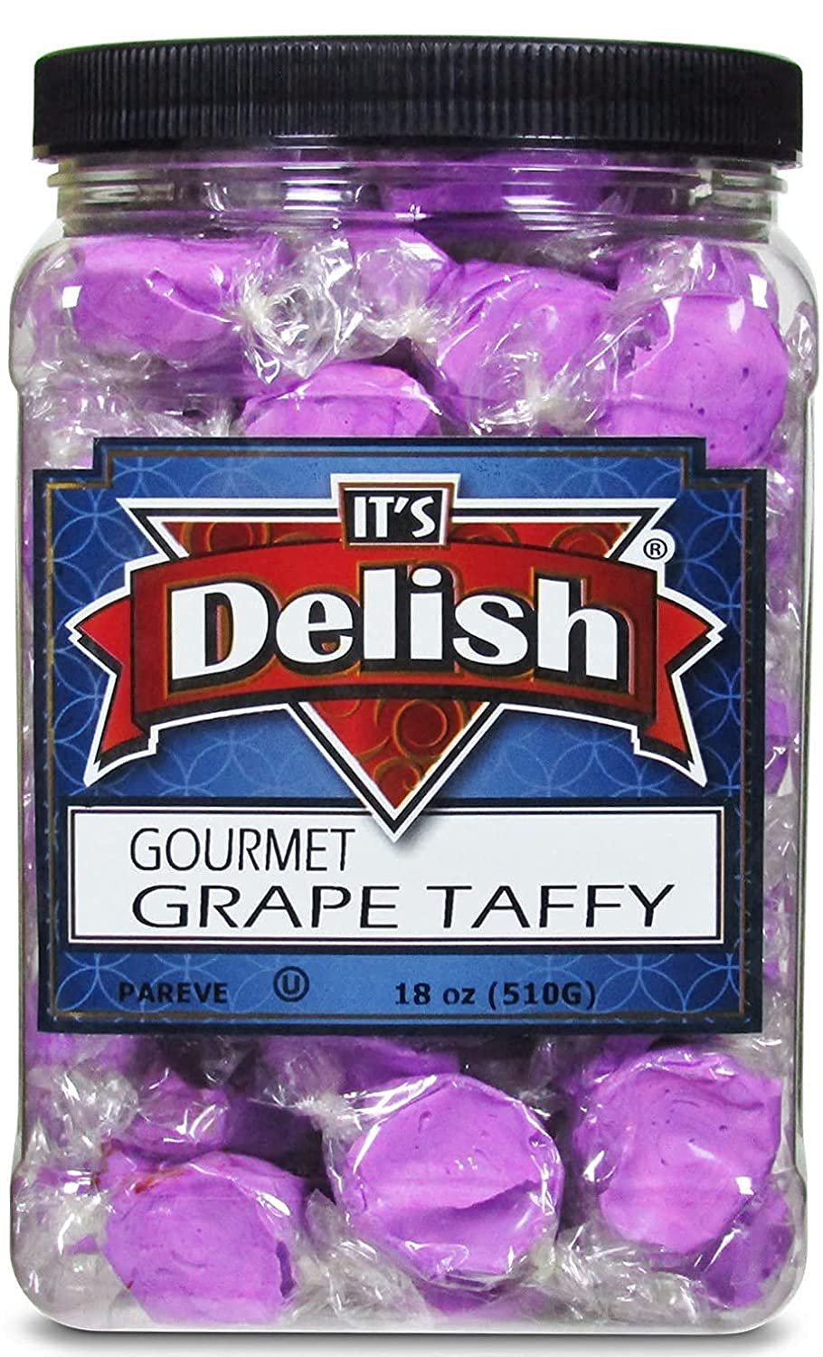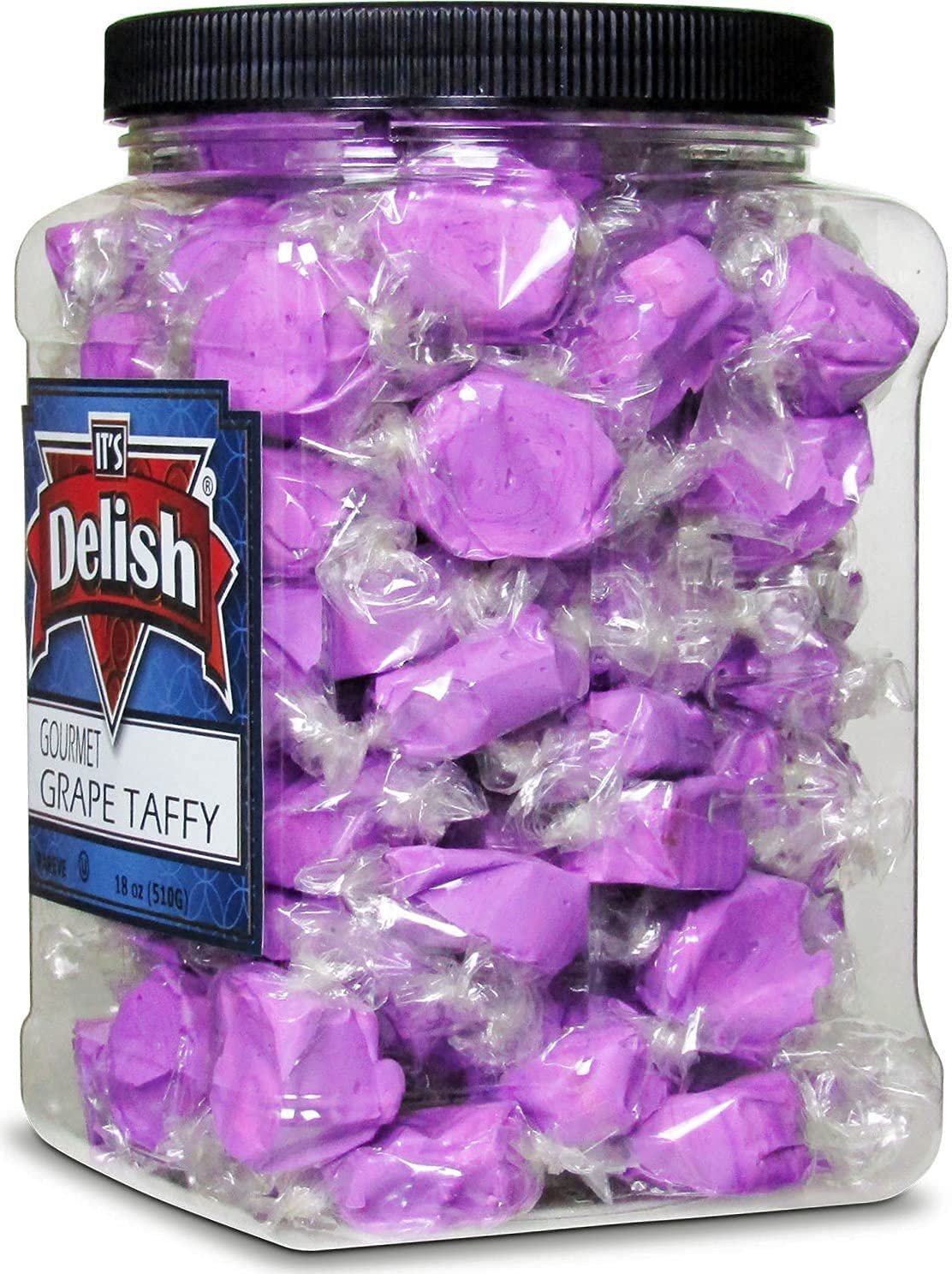 - YOUR FAVORITE GRAPE TAFFY – Its Delish Grape Taffy 18 Oz Jumbo Reusable Container is favorite among the dentists, teachers, and parents. Ideal for schools, dental and health care offices, and families who love to smile. These healthy treats are perfect for everyone, and great rewards or prizes for young children. Healthy Grape Taffy with a mission to make you smile, whether that's reliving childhood or offering better things for our kids.