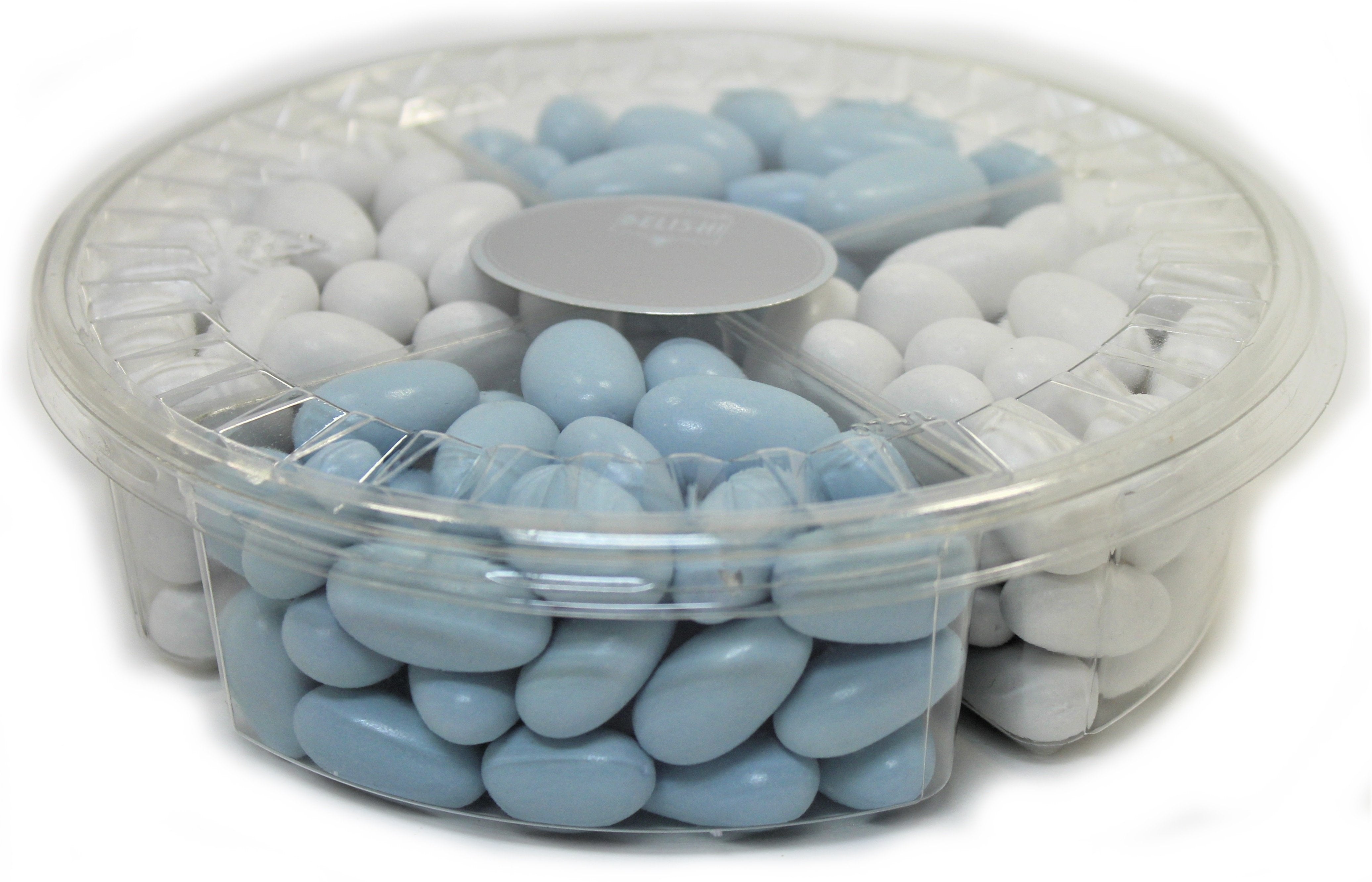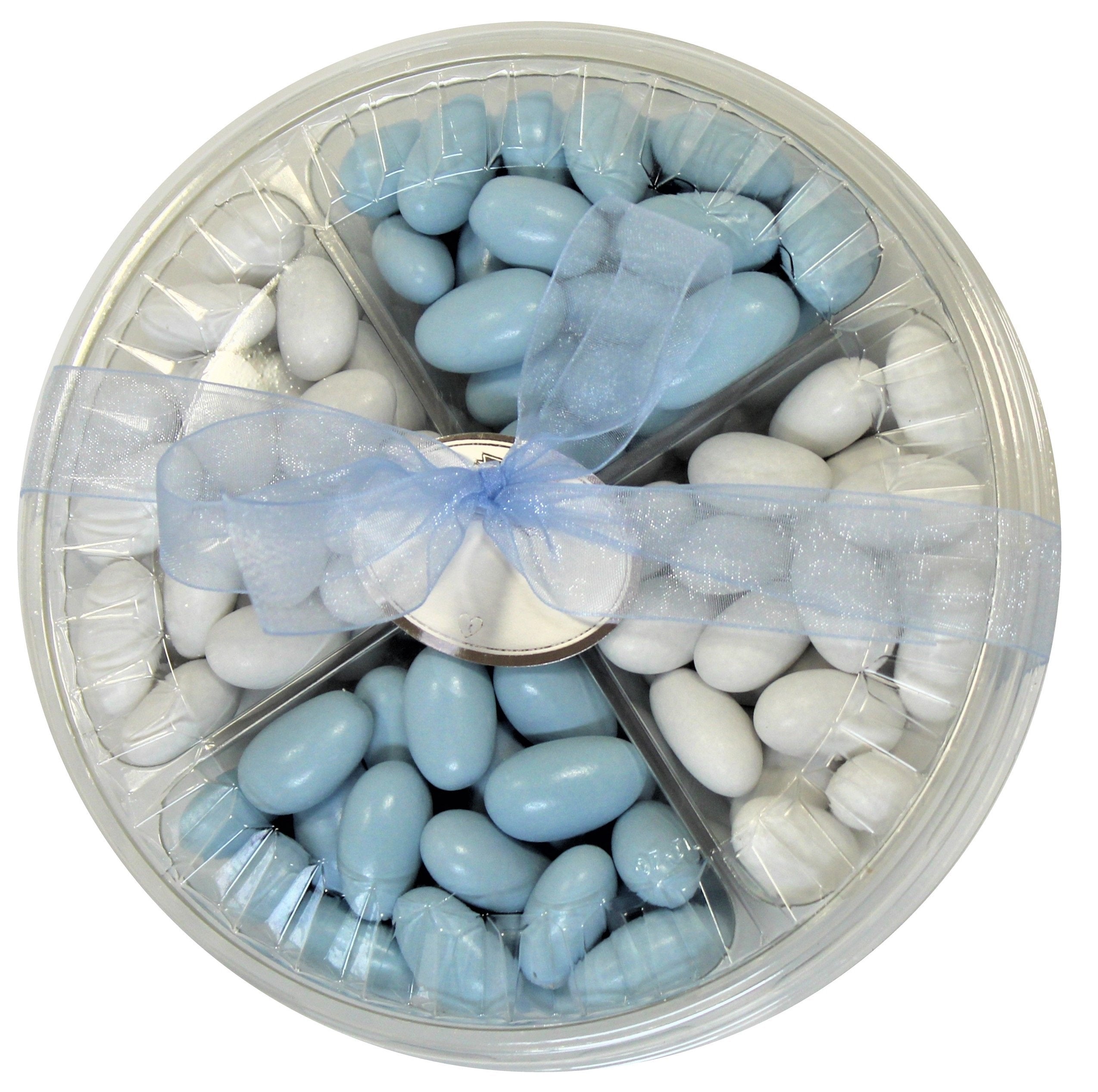 GIFT BASKET 4 section medium tray of blue and white Jordan Almonds