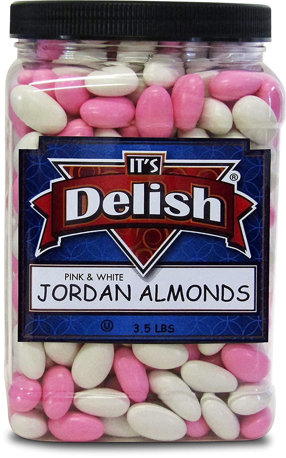 Pink and White Jordan Almonds Mix 3.5 lbs Jumbo Container