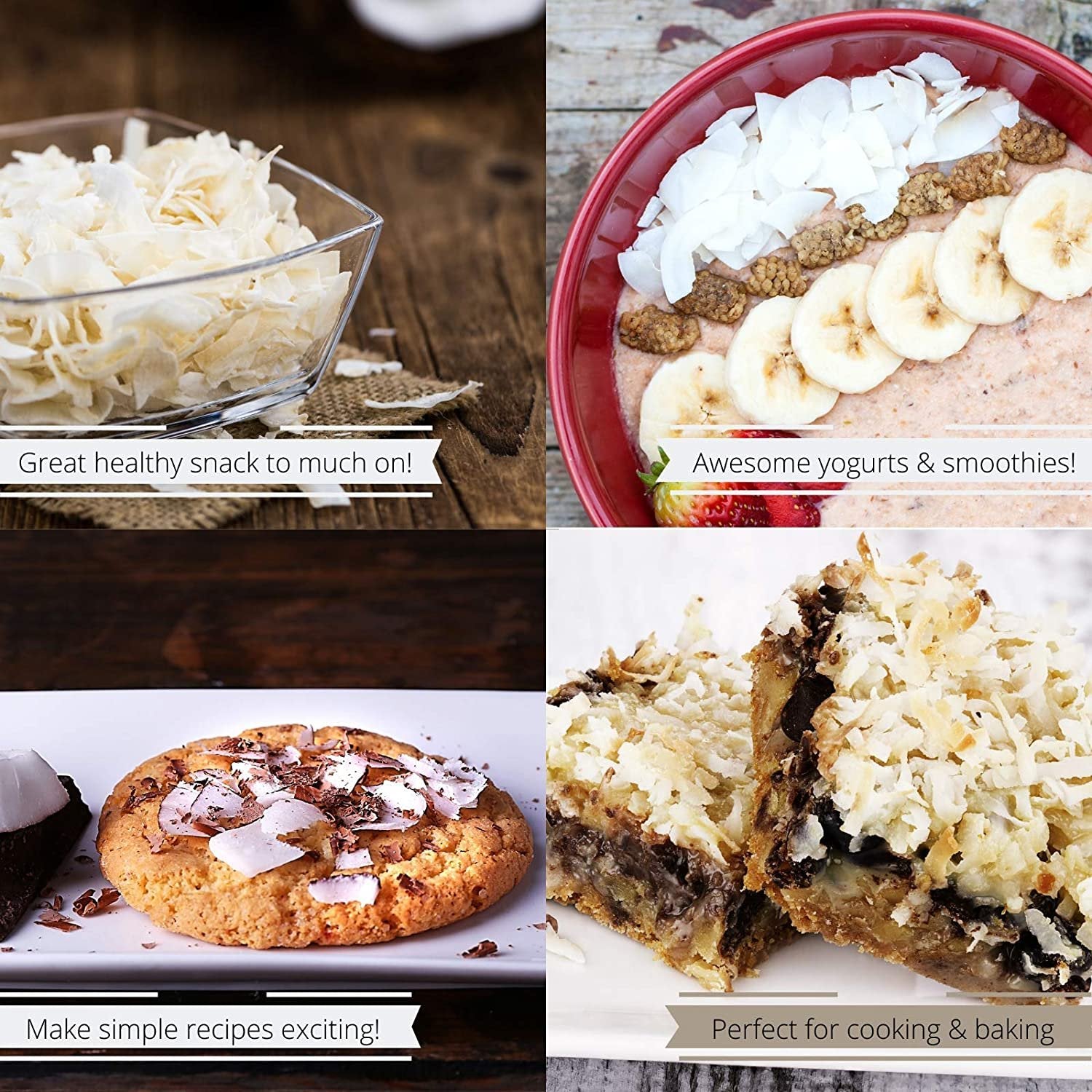 Enjoy awesome fresh and healthy topping for yogurt, salads, ice cream, baked goods, cereal, pancakes, and smoothies, oatmeal, or granola and whatever else needs a mild coconut flavor and nutrition to baked goods.