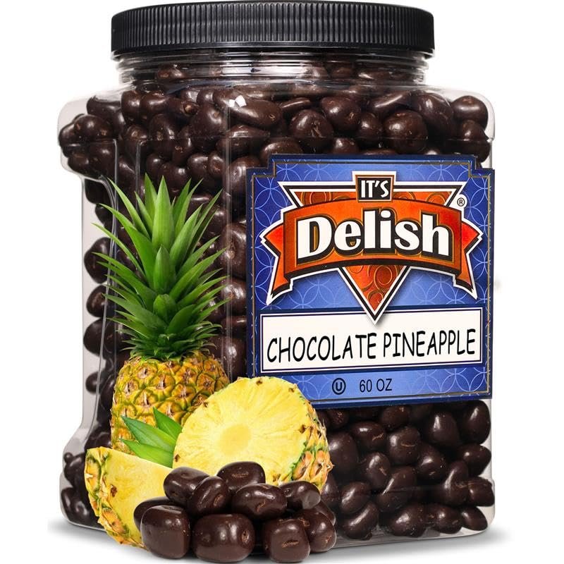 Dark Chocolate Covered Pineapple Bits by It's Delish, 60 OZ Jumbo Container | Gourmet Chocolate Covered Pineapple Bits Fruit Snacks Bulk Chocolate Candy Treats | Vegan, Non-Dairy, Kosher