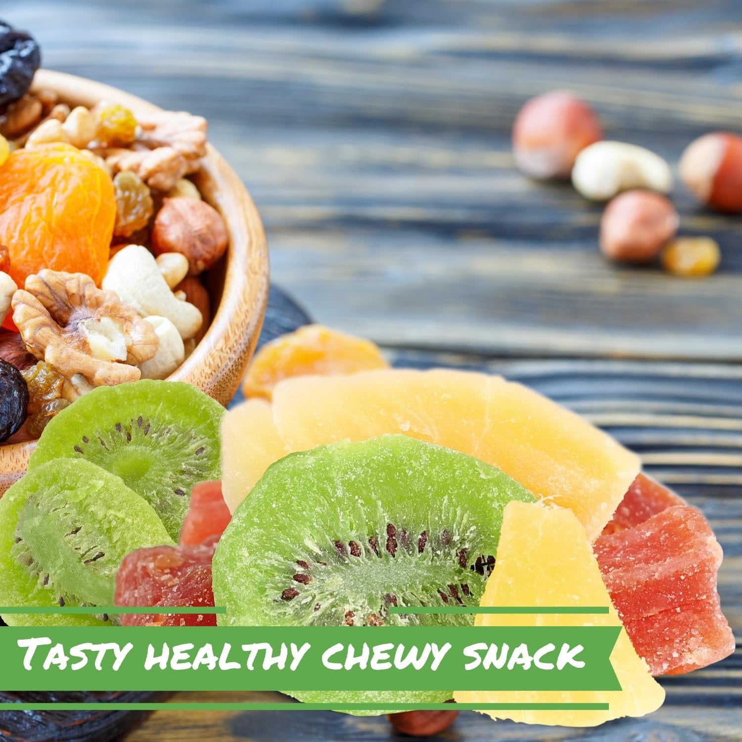 - TASTY FRUIT MIX: Dried Mixed Fruit medley - Our dried fruit assortment includes a variety of diced fruits like tasty pineapple, mango slices, papaya chunks and green kiwi slices, offering a delightful balance of sweetness, freshness, and mouthwatering texture and eye-catching appearance!