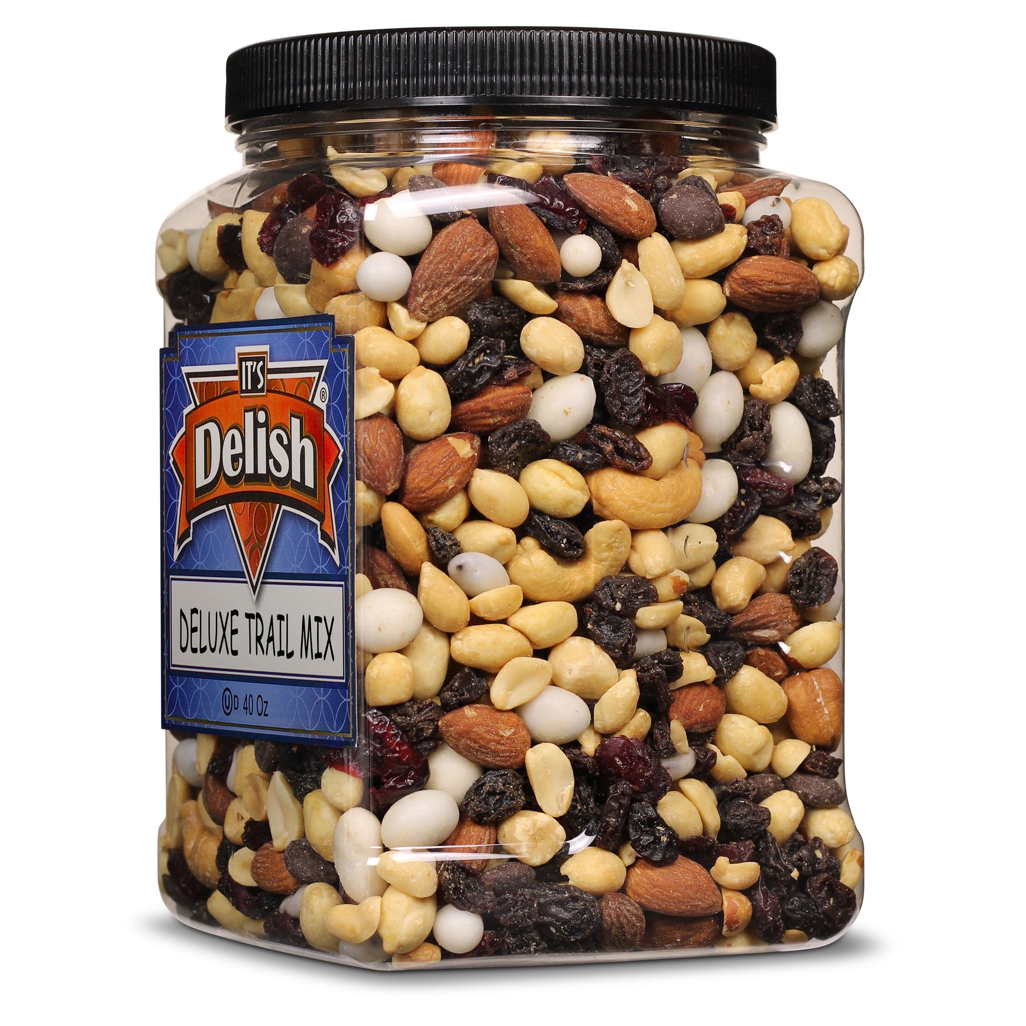 Deluxe Trail Mix with Greek Yogurt, Chocolate, Fruit and Nuts by Its Delish, A delicious blend of roasted mixed nuts in salt with delightful crunch and freshness is what Its Delish Greek Yogurt Mixed Nuts are all about. These mixed nuts are simply delicious. What more? You can add these mixed nuts to different foods. Add them to your ice cream, waffles, cake, salads, or any other meal you find it should be added to. They will enhance the taste of your meal ten times more! Deluxe Roasted Sea Salted Mixed Nuts Ingredients: Thompson Raisins, Roasted Salted Peanuts, Roasted Salted Almonds, Greek Yogurt Raisins, Cranberries, Roasted Salted Cashews, Dark Chocolate Chips. These mixed nuts are packed with fibers, vitamins, and proteins that ensure you snack on healthy food only. We deliver our fresh products right to your doorstep. In fact, you can munch on these salted mixed nuts late at night or while watching movies or binge-watching your favorite season. Another way to use these mixed nuts is on get-togethers you hold at your place. The snack platter you will prepare will have the servings of these nuts in it. So, don’t wait any longer and buy our Deluxe Trail Mix Greek Yogurt Nuts now!