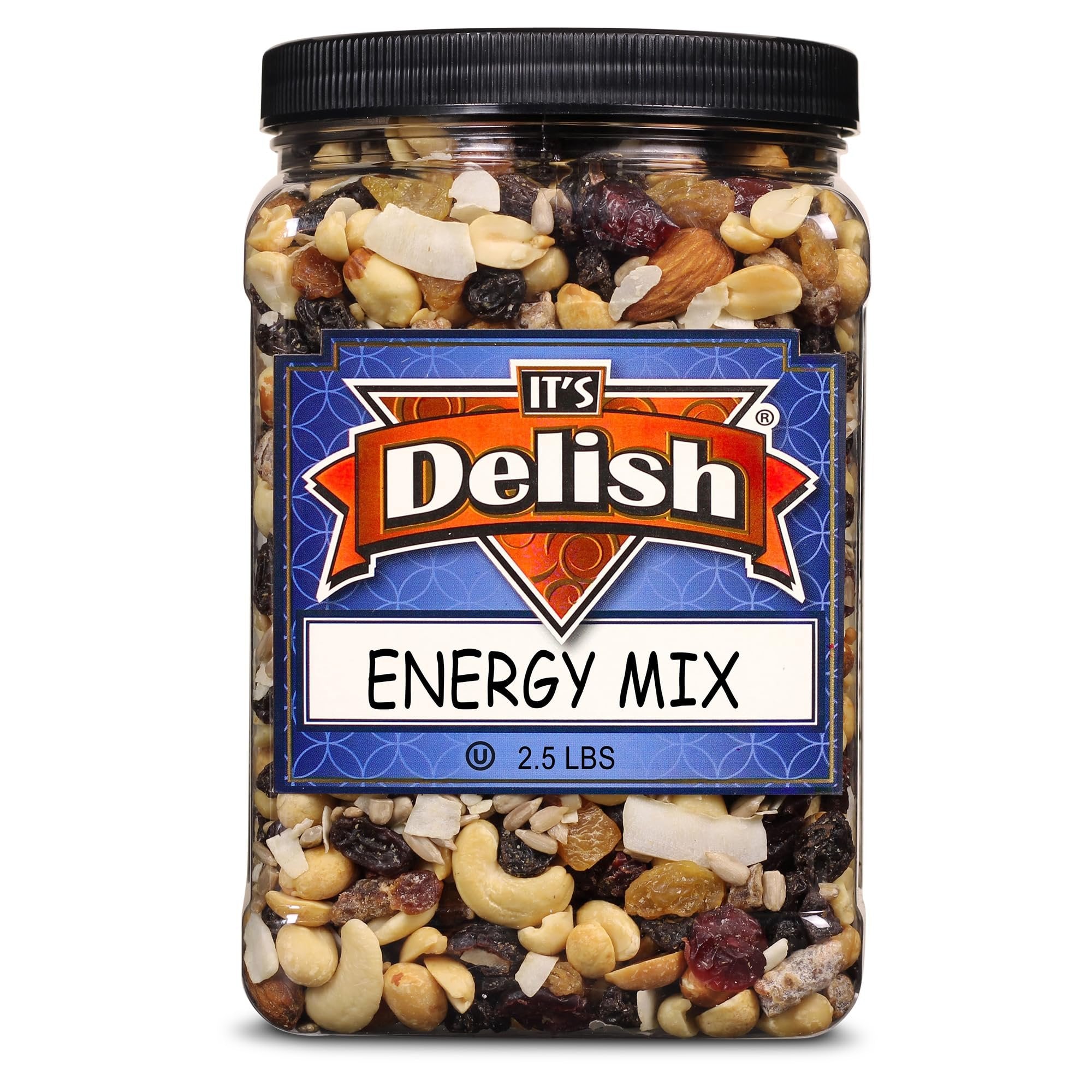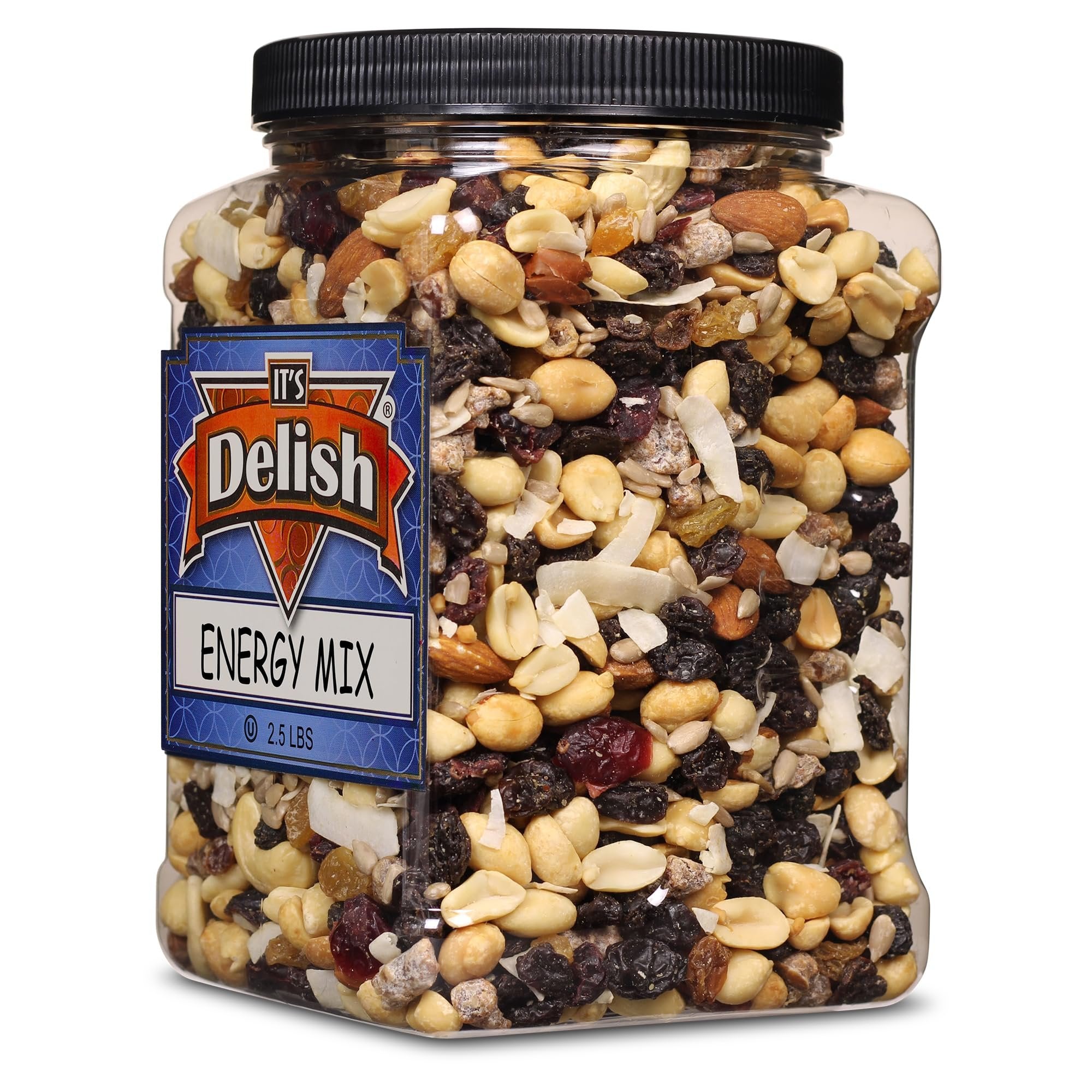 Energy Mix Fruit and Nuts Trail Mix by Its Delish, Treat for Every Occasion! It’s Delish proudly presents a sweet and salty blend of tropical mix of fruits and nuts to satisfy your taste buds. It is an ideal mix of cashews, peanuts, raisins, figs, dried fruits, and other nuts. What more? Unlike store-bought items where you have to travel to the store, we deliver the energy tropical mix to your doorstep. This means no traveling cost. This tropical mix yummy-licious treat is simply amazing. From the very first bite, you will experience authentic flavor and crunchiness. Moreover, every ingredient is handpicked and sourced from the best places in the USA to deliver maximum freshness every time! Ingredients of Energy Mix Nuts: Raw Almond, Thompson Raisins, Golden Raisins, Blueberries, Coconut, Peanut, Pitted Dates, Sunflower Seeds, Cranberry, Turkish Apricots. Munch on this snack day or night, whenever you want. No one will stop you as these fruits and nuts are rich in fibers and proteins. This treat will give you the daily energy boost you require. It’s Delish offers benefits even when you gobble down everything in the container. This is due to the jumbo, reusable jar we send you the tropical mix in.