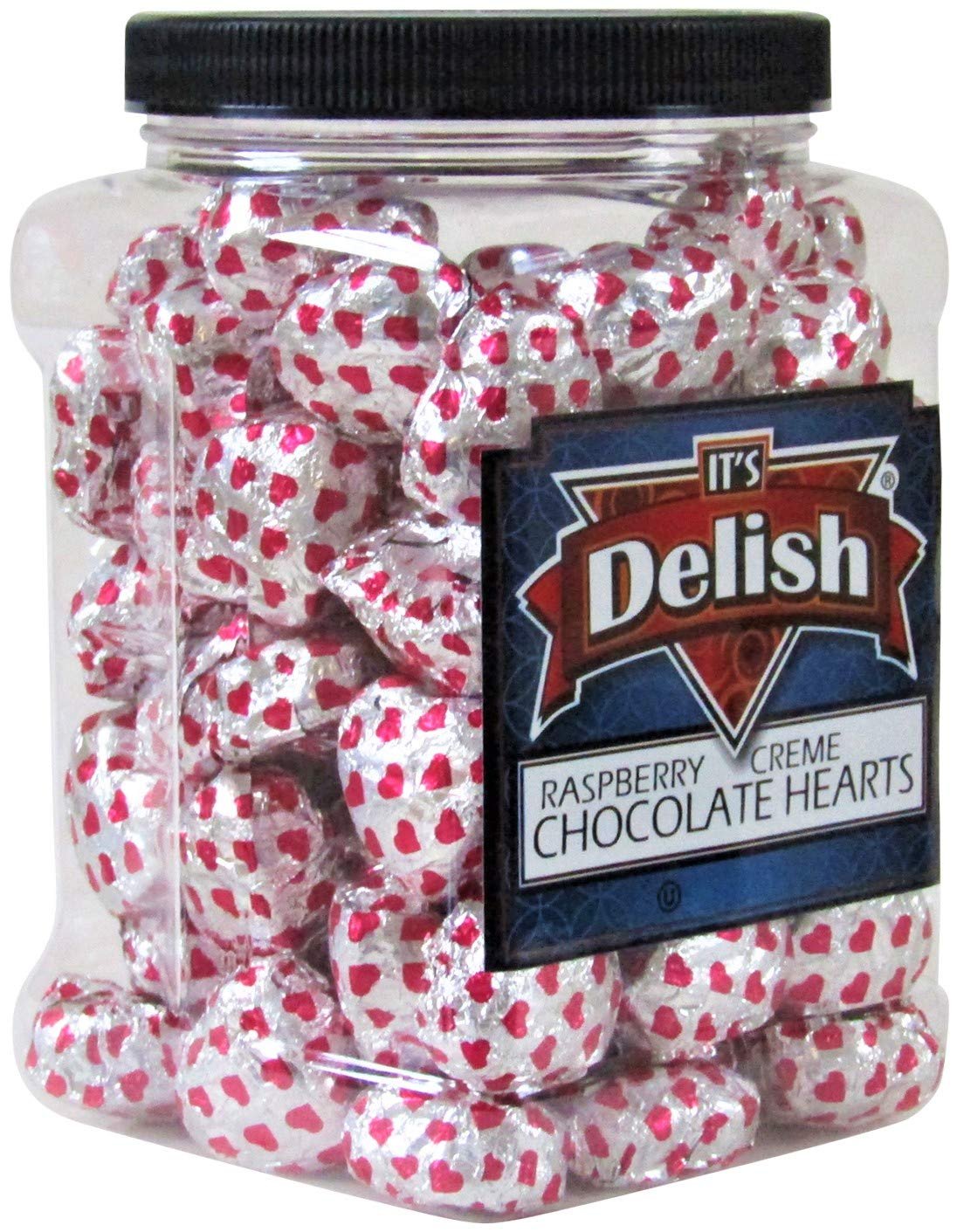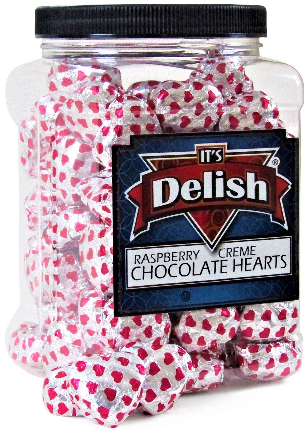 - PERFECT CLASSY GIFT – of goodies! Holds about 75 luscious kosher chocolate cremes individually wrapped in a classy color foil for the holiday and any occasion, looks great tastes awesome. These chocolate covered rich raspberry flavored cream hearts are individually wrapped in fancy pink, red, silver foil - it's your choice! There's about 30 pieces per pound. That's a lot of goodness!
