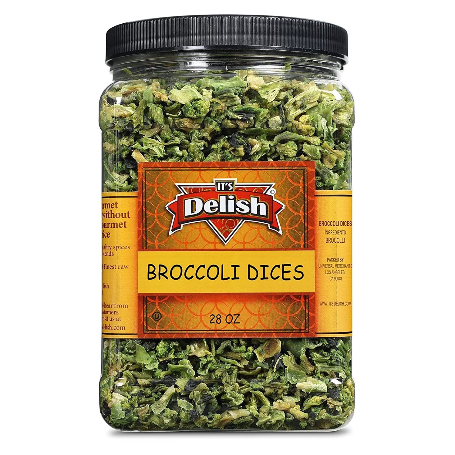 Gourmet Dried Broccoli Dices by It’s Delish, 28 OZ Jumbo Container Jar If you are looking for freeze-dried or dehydrated vegetables that have a quality taste, look no further than our dried broccoli dice. Our versatile dried vegetables can be used in soups or casseroles. Store in your pantry as a backup vegetable when you don’t have time to run to the grocery store. This freeze-dried food is ideal for those with limited fridge and freezer space who still want vitamin-rich vegetables in their regular diet. Add a pinch of this broccoli to your soups or other boxed products that need extra flavor or are light on veggies.About It's Delish!It's Delish was established in 1992 and is located in North Hollywood, California. It's Delish is a food manufacturer and distributor that produces over 500 gourmet food products including licorice, sour belts, taffies, caramels, Jordan almonds, chocolates, nuts, fruits, and trail mixes, spices, and spice blends. It's Delish also produces s and all-natural products. We give you the opportunity to order from the factory direct!It’s Delish!™ prides itself on the four pillars that are at the foundation of everything we do.
