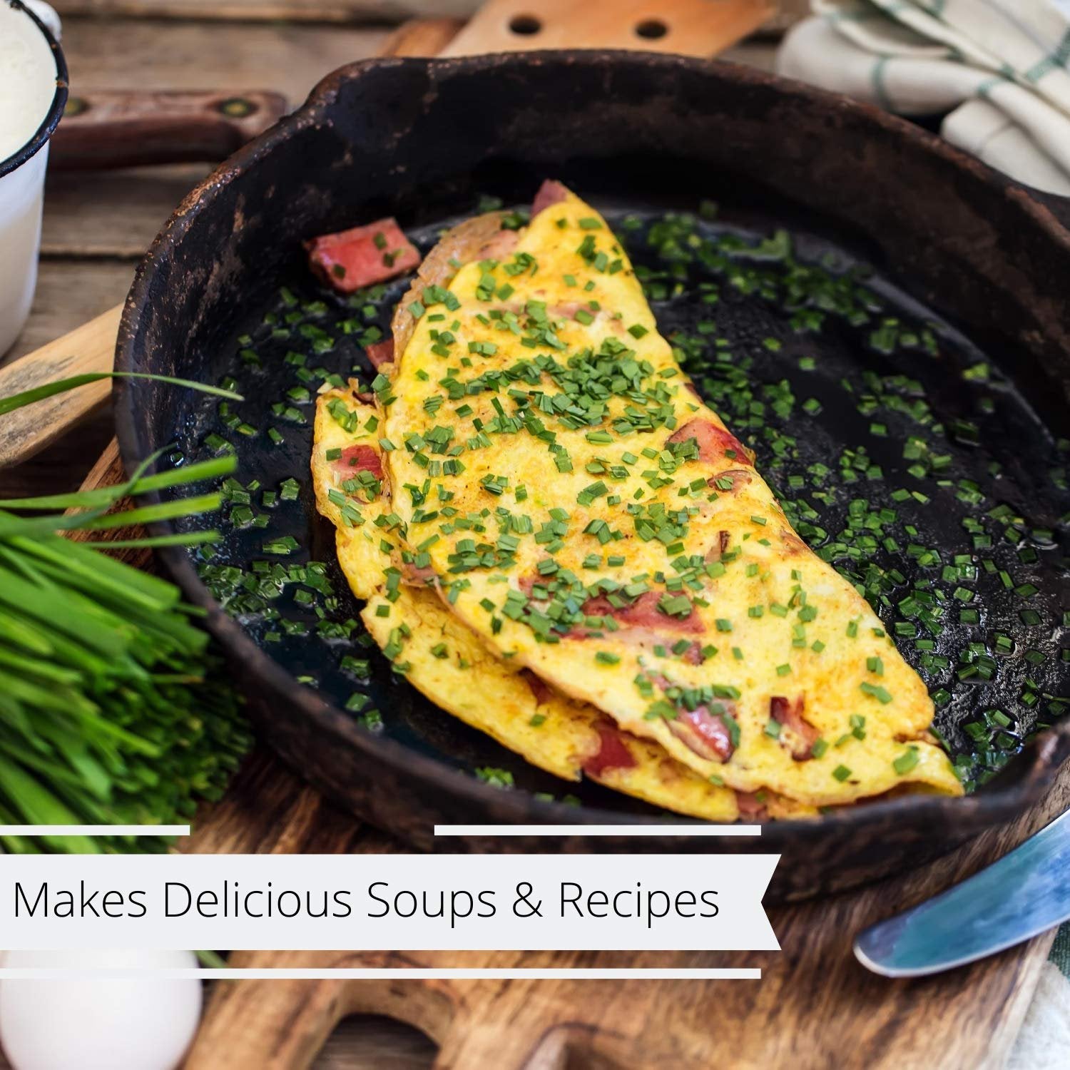 - HEALTHY WITH AROMATIC FLAVOUR – Enhance the taste of your dishes with our dried chives. It adds a warm zest and a natural aroma to savory dishes and gives it a robust and aromatic flavor. The delicate flavor that chives impart to food makes it a very useful herb. Chives are also rich in vitamins A and C, and are rich in calcium and iron.