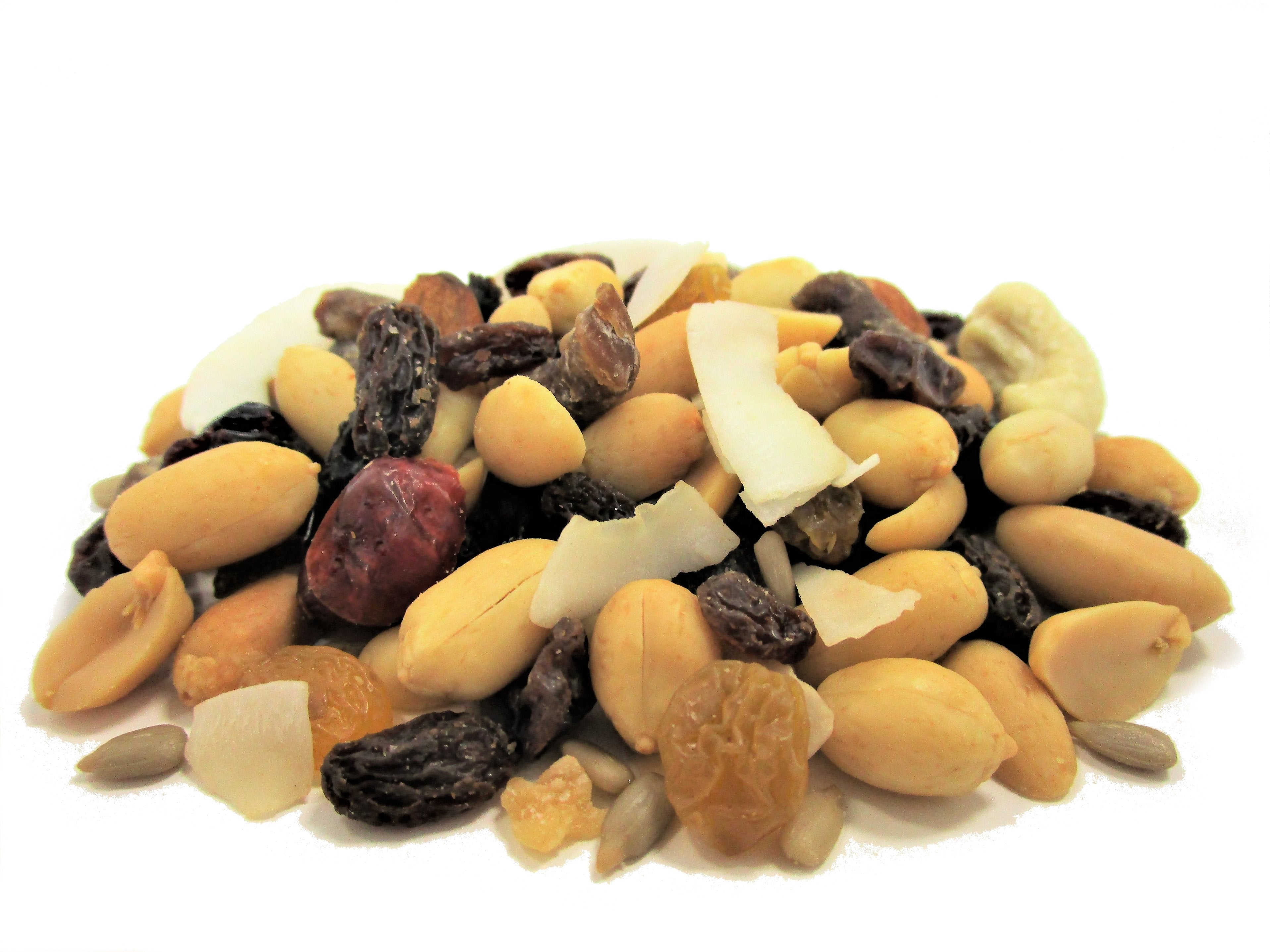 Delicious medley of Fresh Nuts, Dried Fruit, Greek Yogurt Coated Raisins and Dark Chocolate Chips. This trail mix includes Peanuts, Almonds, Raisins, Craisins (Cranberries) and Cashews.