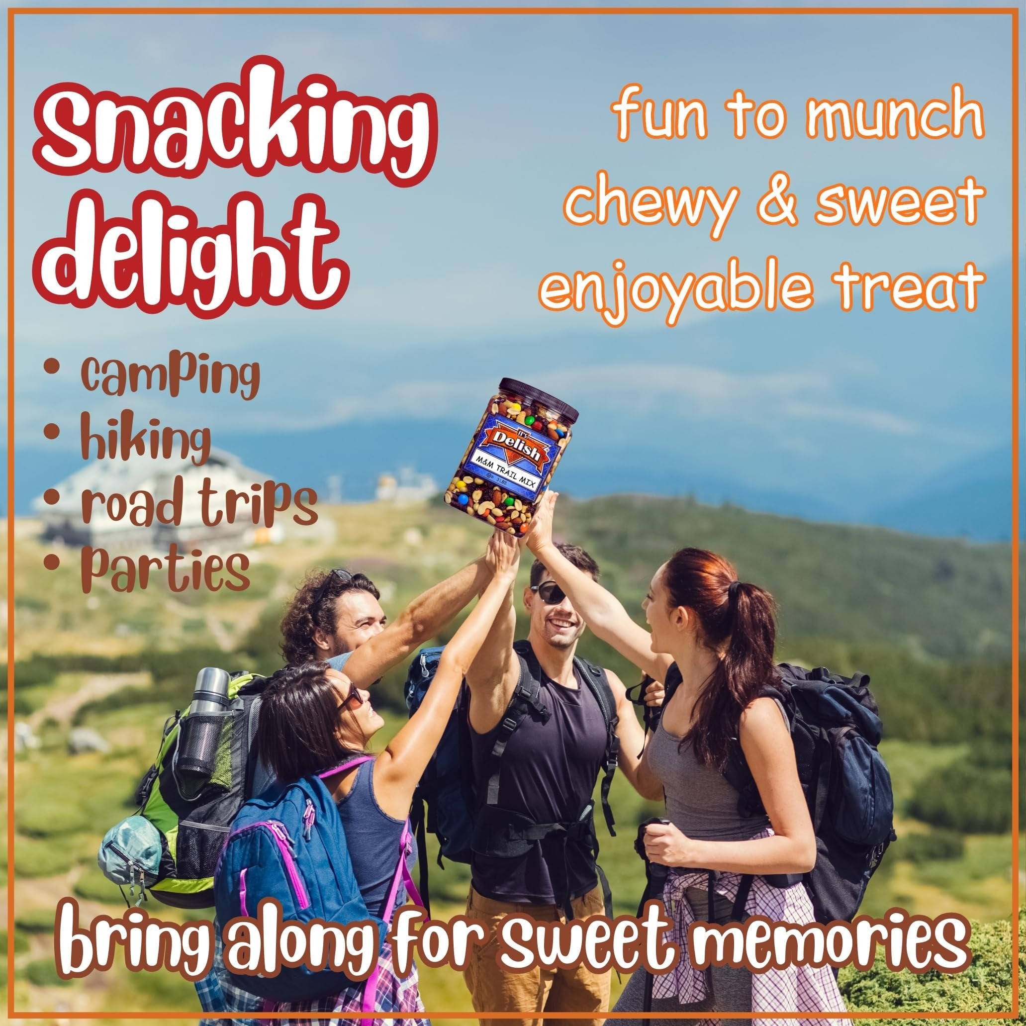 Try our delicious snack mix of Fresh Roasted Salted Nuts, Dried Fruit, and M&M's. This trail mix with chocolate candy is a sweet and salty medley, and includes Peanuts, Almonds, Raisins, Cashews as well as M and M milk chocolate candies. Stock up to have as a yummy and healthy power up snack at the home, office and on the go. Enjoy!