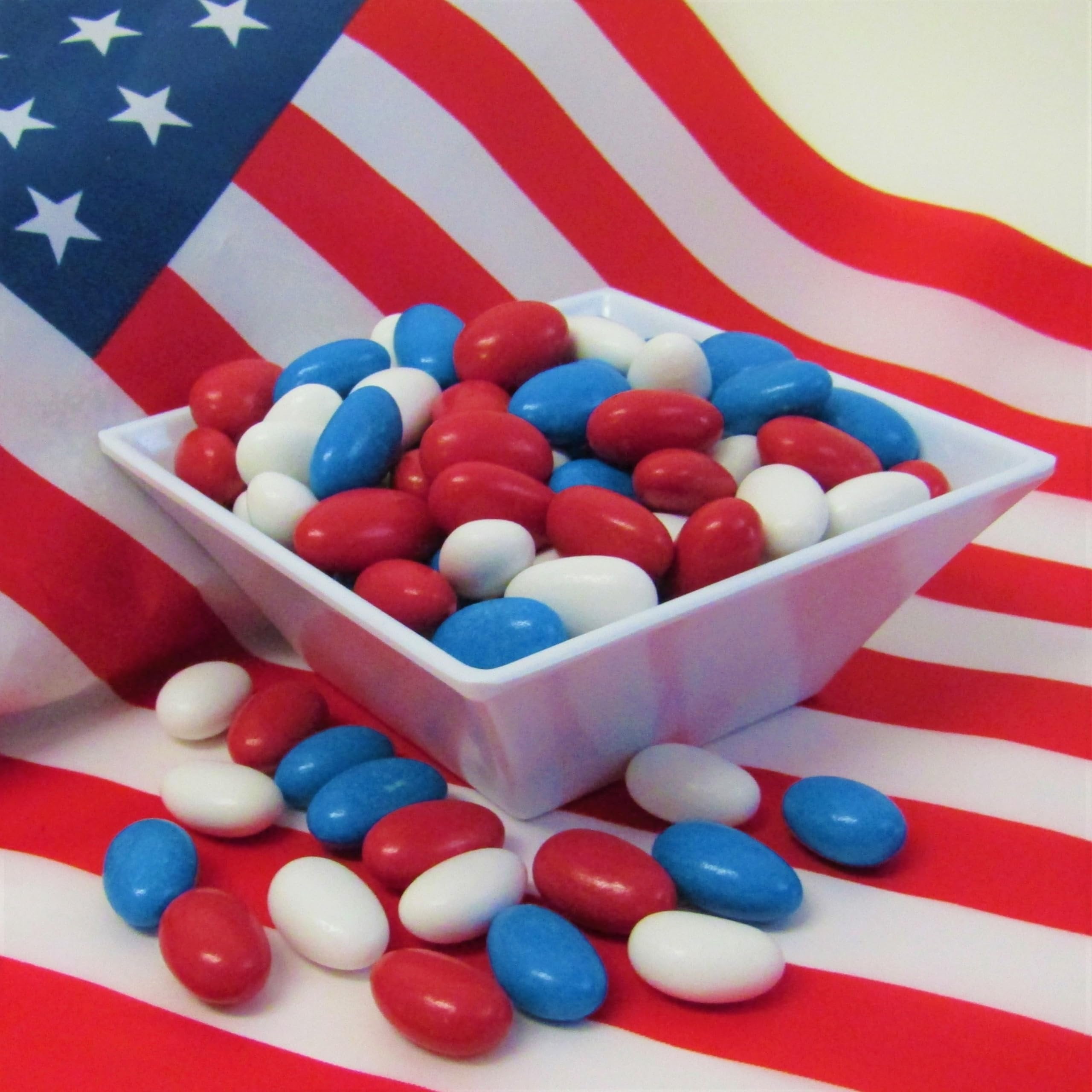 Red, Blue & White Jordan Almonds Medley, Two Pounds